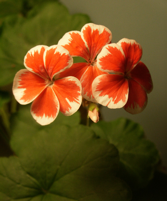 äldre sort med rödorange blommor, mörkgröna blad med en